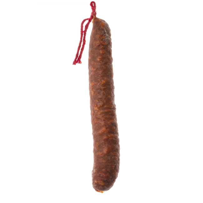 Chorizo vela picante er en autentisk, spansk chorizo fra Girona (Catalonia). Den er middels spekt (og halvmyk), svært smakssterk og passe pikant/sterk. Dette er en chorizo som smaker slik den gjør i Spania. Den er ypperlig til tapas og som pålegg, og ikke minst er den perfekt på pizzaen!