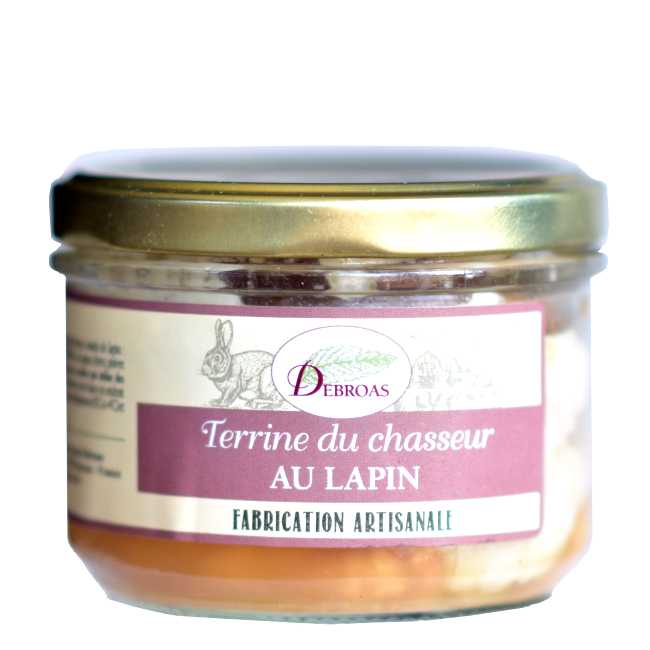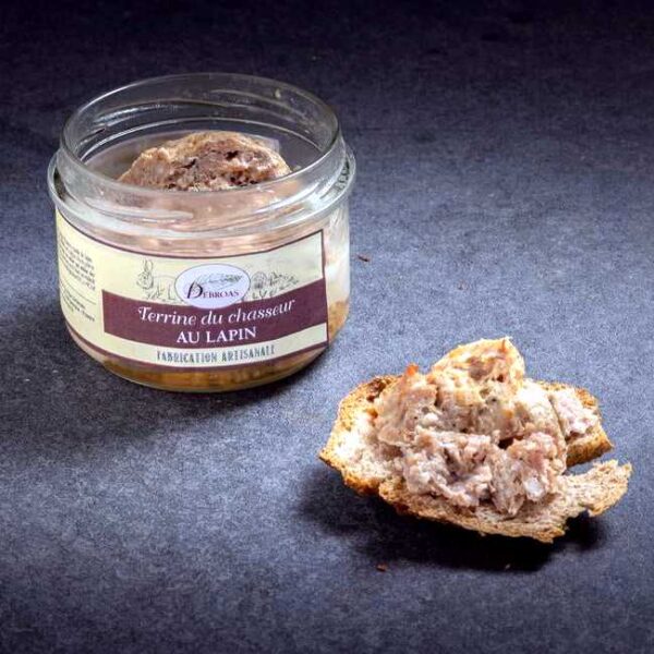Dette er terrine de campagne au lapin, en tradisjonell vilterrin med 20% harekjøtt, krydret med blant annet cognac. Hareandelen er akkurat passe for å gi en god smaksvri til terrinen! Den er god og kraftig på smak og deilig grov i konsistens. Terrinen er produsert av en familieeid bedrift i Ardèche i Sørøst-Frankrike, en region kjent for god og tradisjonsrik spekemat.
