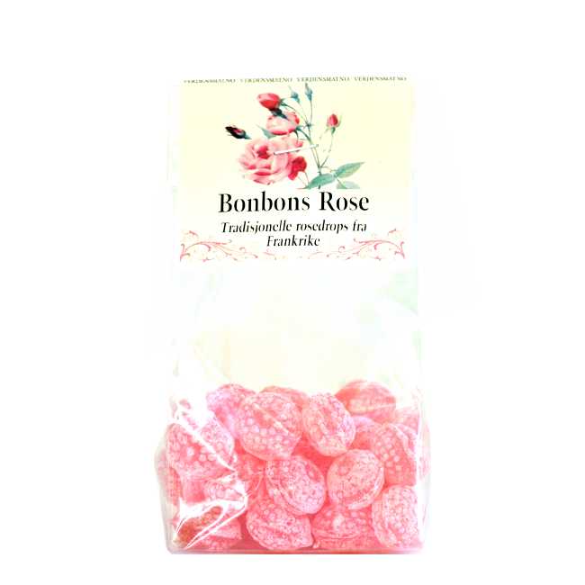 Bonbons rose er tradisjonsrikt sukkertøy fra Sør-Frankrike. Ja, hele Sør-Europa og Midtøsten er glad i smaken av rosekronblader (som smaker slik duftroser lukter). Ikke for søte, ikke for intense, men likevel en deilig, balansert smak av roseduft!