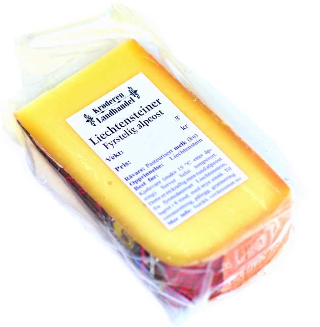 Innhold: 300 g (± 15 g) vellagret alpeost fra Liechtenstein