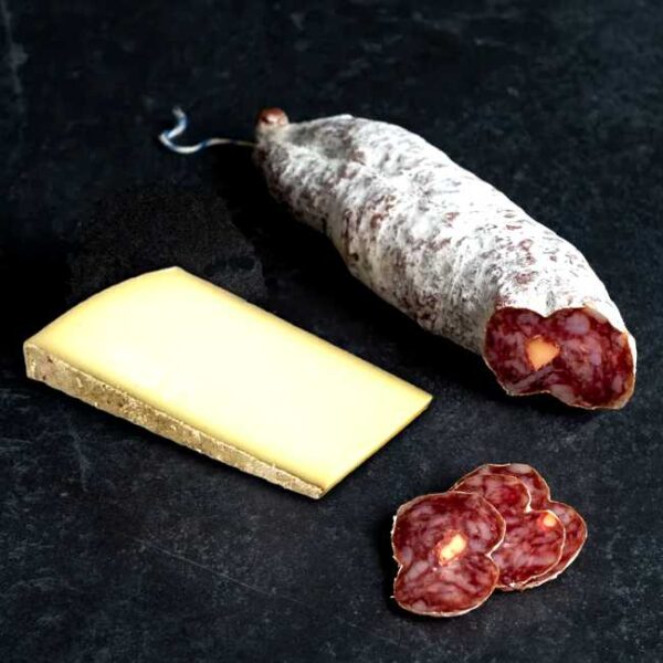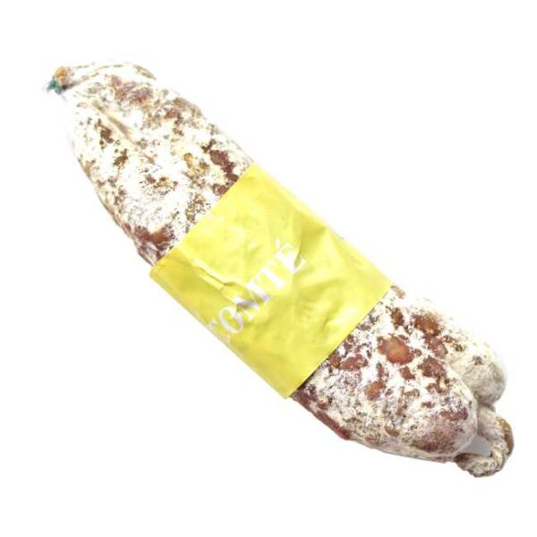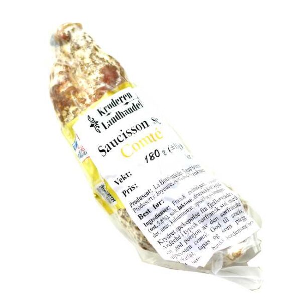 Dette er en skikkelig fransk håndverksspekepølse fra fjellene i Ardèche i Sørøst-Frankrike! Den heter saucisson sec au Comté på fransk, noe vi kan oversette til «spekepølse med osten comté». Det er snakk om en håndlaget spekepølse i svært fransk tradisjon, med en fuet-lignende grunnsmak og en behagelig konsistens som verken er for hard eller for myk. Denne er i tillegg smakssatt med en god porsjon av den sørøstfranske alpeosten comté.