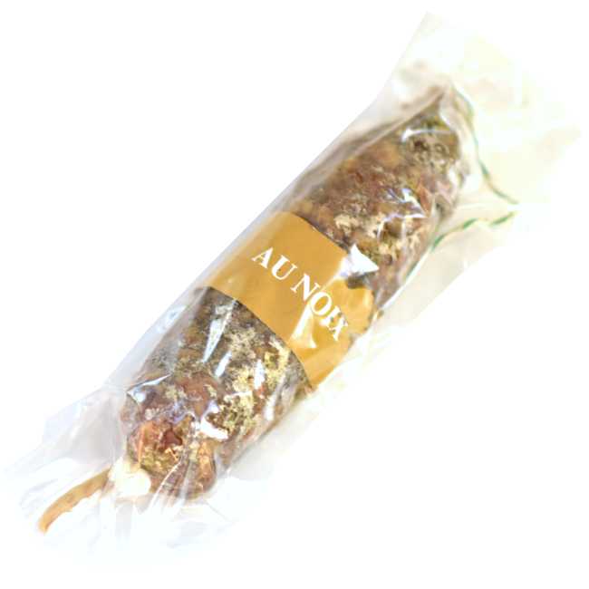 Innhold: 180 g (± 15 g) fransk spekepølse med svinekjøtt fra Ardèche (saucisson sec) og valnøtter fra Périgord