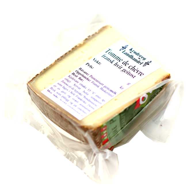 Innhold: 250 g (± 15 g) fransk hvit geitost, type «Tomme de chèvre»